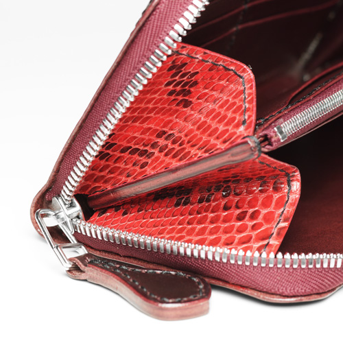 中パーツ:両サイドカード入れ、コバ色入れ、小銭入れ横ポケット、カードケース裏・マチ・小銭入れ内側:パイソン紫