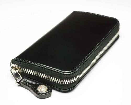 #687 ベース : ラウンドジップウォレット コードバン 黒