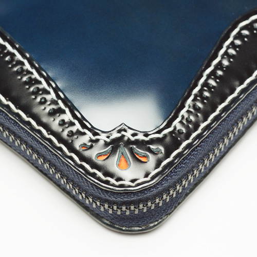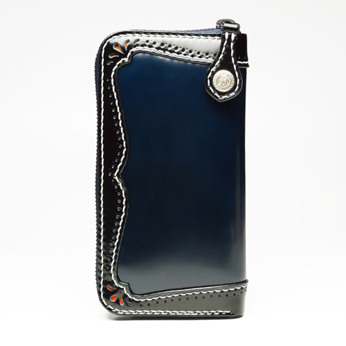 #675 ベース : ラウンドジップウォレット コードバン 本藍染め