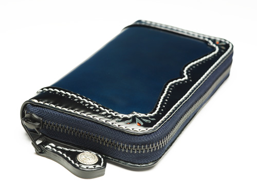 #674 ベース : ラウンドジップウォレット コードバン 本藍染め