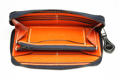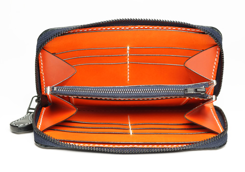中パーツ:両サイドカード入れ オレンジ、コバ色入れ黒、小銭入れ横ポケット