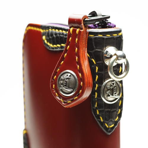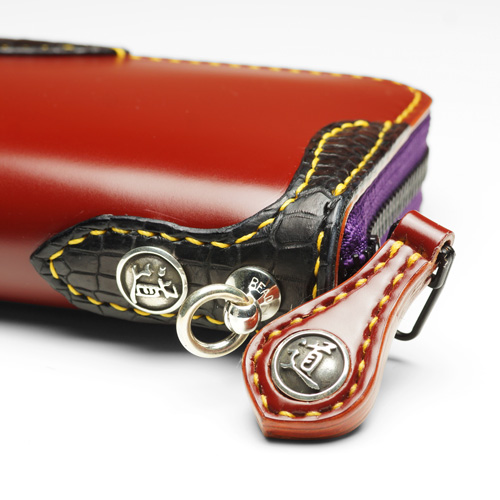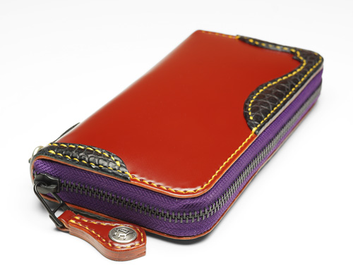持ち手スモールコンチョ:マルBシルバー、ファスナーカラーチェンジ、パンチング下地:オレンジ(四隅)