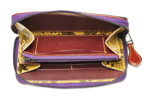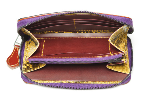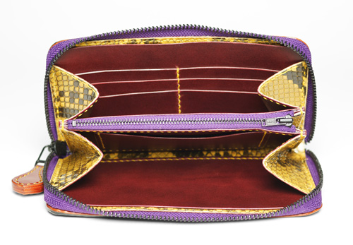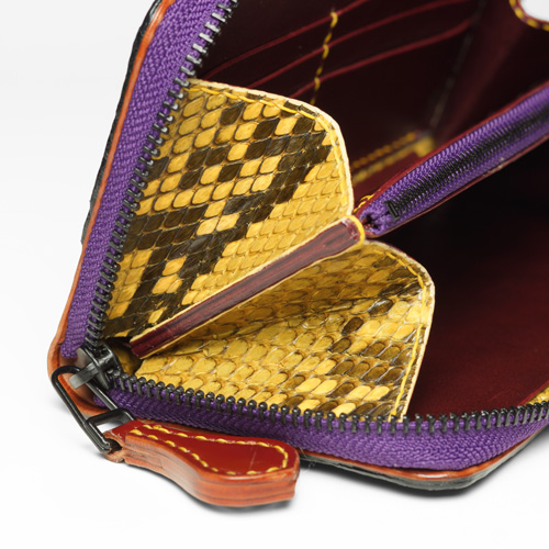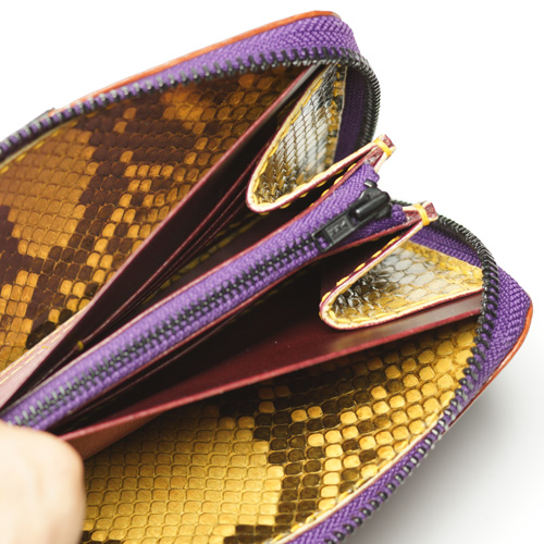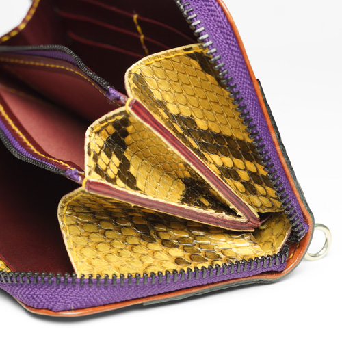 マチ:パイソン黄色、小銭入れ横ポケット、内張り:パイソン黄色