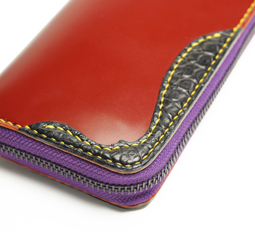 #680 ベース : ラウンドジップウォレット コードバン バーガンディ
