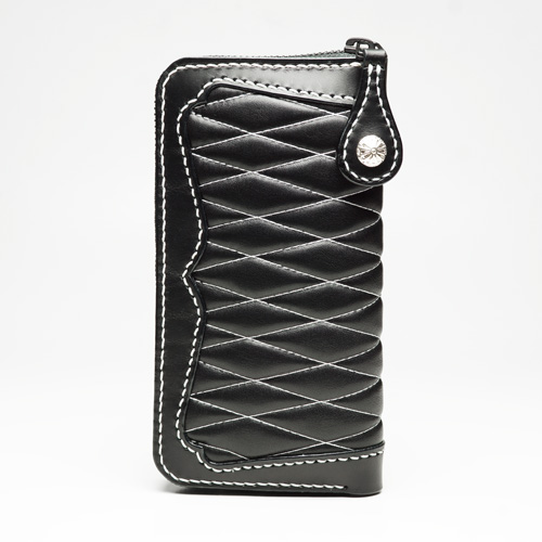 #677 ベース : ラウンドジップウォレット ダイヤモンドステッチ 白ステッチ