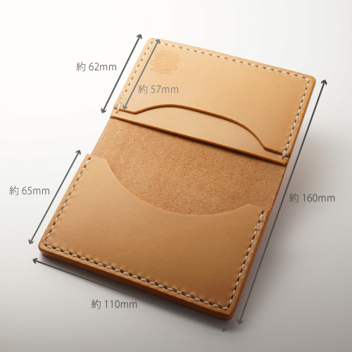 サドル 名刺入れ きなり。手縫いによる、しっかりとした作りで、長く使える逸品です。経年変化も楽しめます。