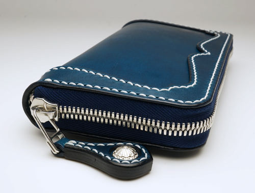 #396 ベース : ラウンドジップウォレット ブッテーロ 青