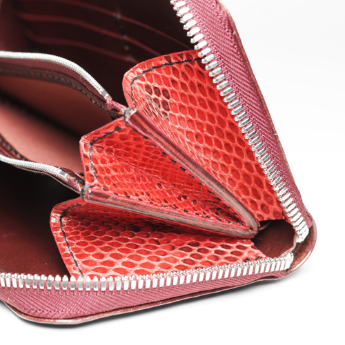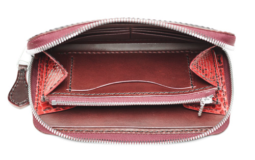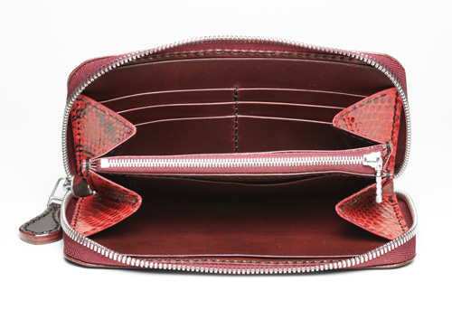 中パーツ:両サイドカード入れ、コバ色入れ、小銭入れ横ポケット、カードケース裏・マチ・小銭入れ内側:パイソン紫