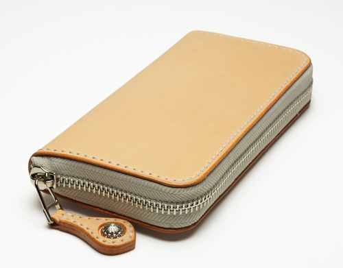 #669 ベース : ラウンドジップウォレット ブッテーロ きなり