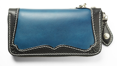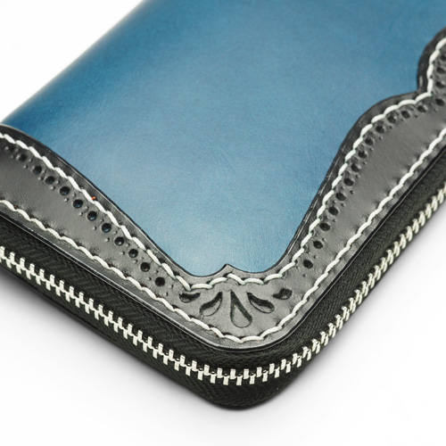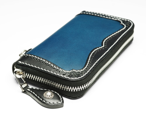 #689 ベース : ラウンドジップウォレット ブッテーロ 青