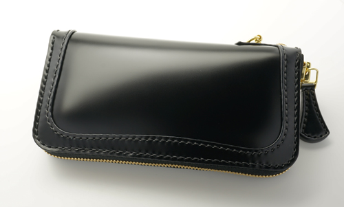 #140 ベース : ラウンドジップウォレット コードバン ダブルカット 黒