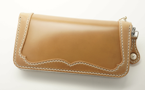 #180 ベース : ラウンドジップウォレット コードバン ダブルカット きなり