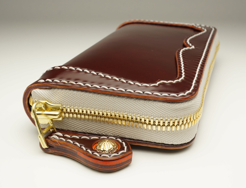 持ち手・土台スモールコンチョ:ブラスフラワー、ウォレットリング:ブラスウォレットリング、ファスナー:ブラック×ゴールド、ダブルカットデザイン変更