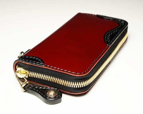 #524 ベース : ラウンドジップウォレット コードバン バーガンディ