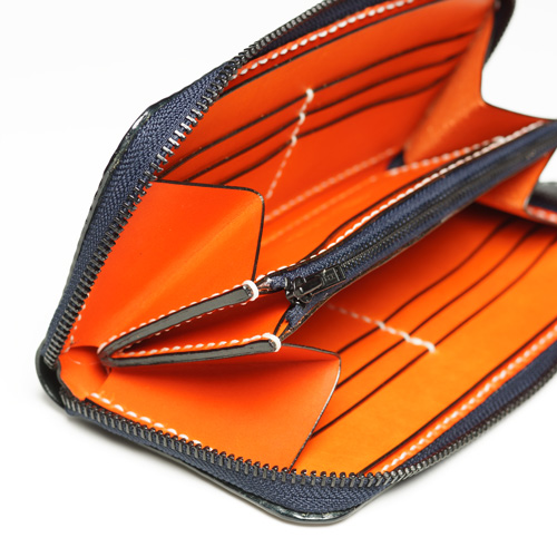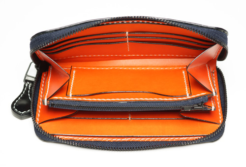 中パーツ:両サイドカード入れ オレンジ、コバ色入れ黒、小銭入れ横ポケット