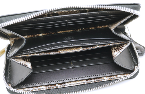 内張り・カードケース裏・マチ表裏・小銭入れ内側:パイソンナチュラル