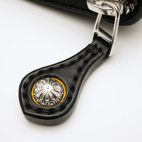 革土台・土台スモールコンチョ・土台ウォレットリングなし、持ち手スモールコンチョ ブラック、ファスナー:黒布×ブラックシルバーコマ
