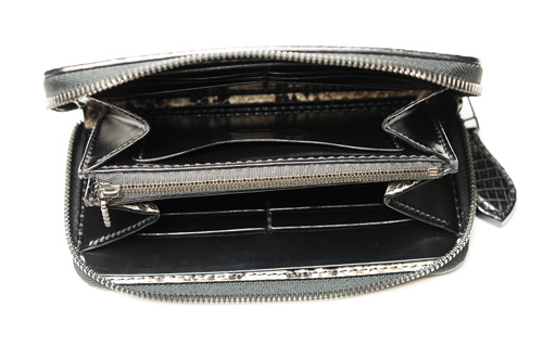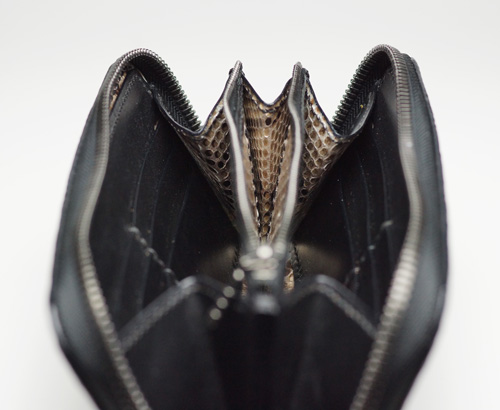 両サイドカード入れ、小銭入れ横ポケット、内張り:パイソン黒