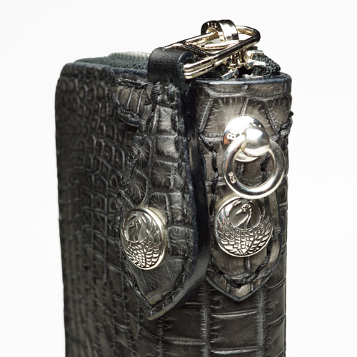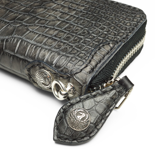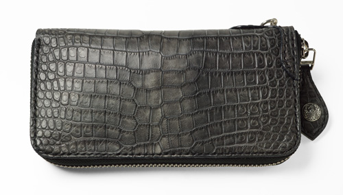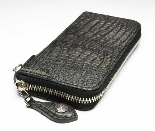 #709 ベース : ラウンドジップウォレット クロコダイル 墨染め