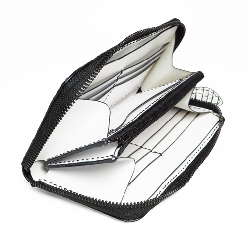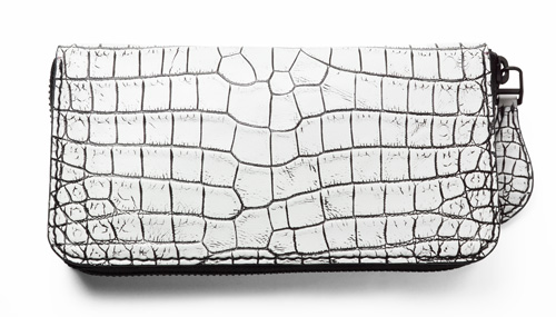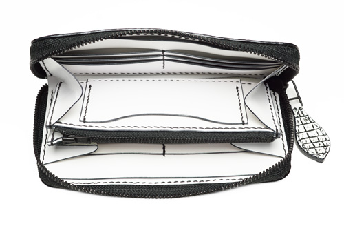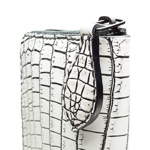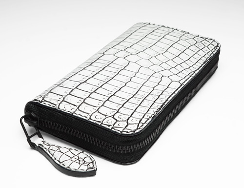 #710 ベース : ラウンドジップウォレット クロコダイル 白黒