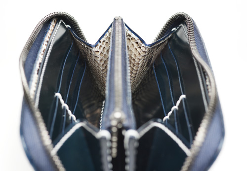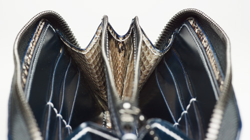 小銭入れ内側・仕切り裏パイソンナチュラル、内張り:パイソンナチュラル