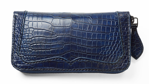 ダブルカット外枠:クロコダイル本藍染め、ファスナーカラーチェンジ