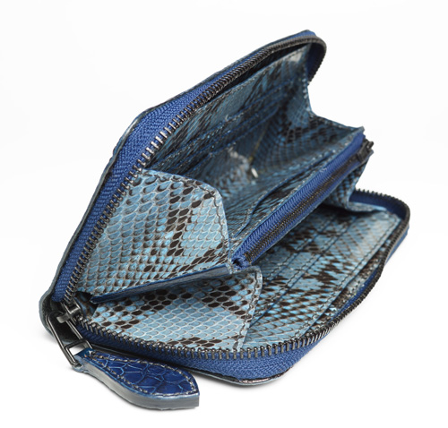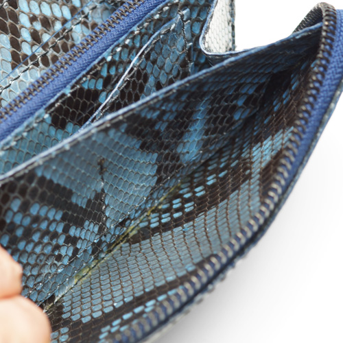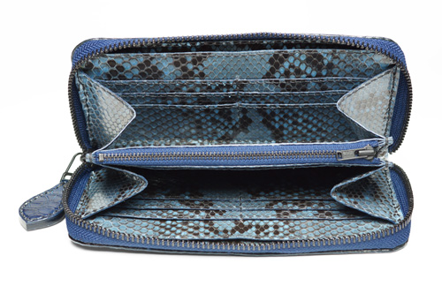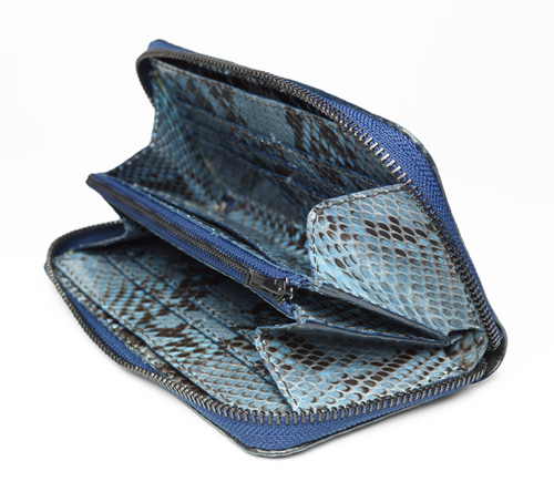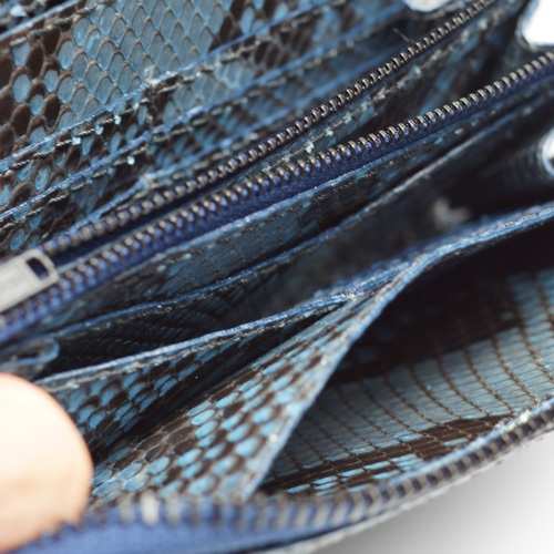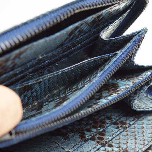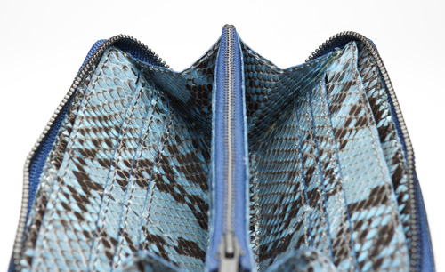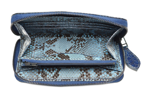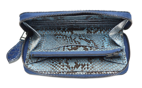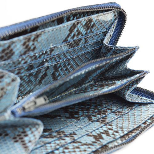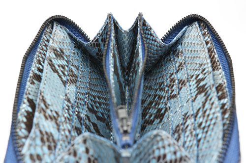 マチ・内張り・カードケース裏・小銭入れ内側・横ポケット内側・カードケース内側:パイソン青