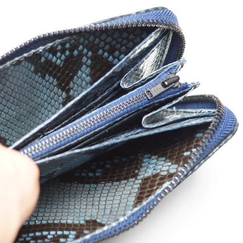 中パーツ:両サイドカード入れ(パイソン青)、小銭入れ横ポケット(パイソン青)