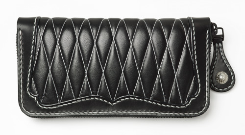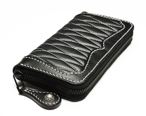 #677 ベース : ラウンドジップウォレット ダイヤモンドステッチ 白ステッチ