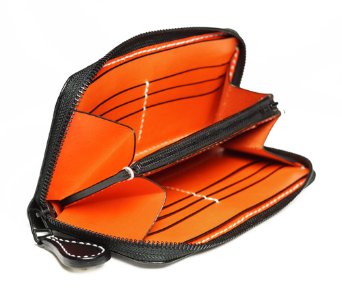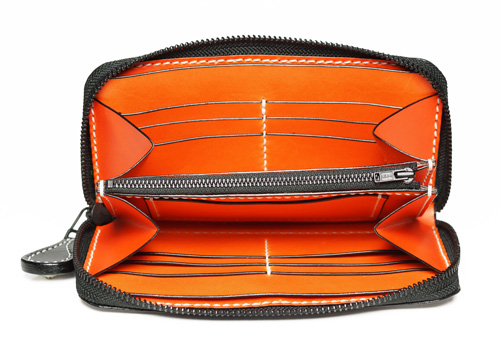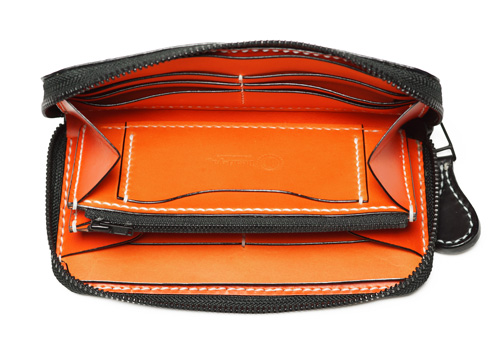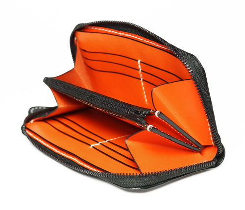 中パーツ:両サイドカード入れ オレンジ、コバ色入れ黒、小銭入れ横ポケット
