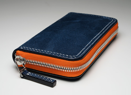 中パーツ:両サイドカード入れ IDオレンジ、マチ5箇所 ID青、ファスナーカラーチェンジ、小銭入れ横ポケット